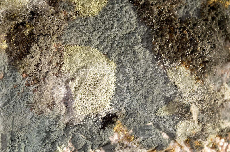 These mold colonies could be grey, white, or light green and grow in a flat format without much height, meaning they aren’t as fluffy and sponge-like as some other mold growth.