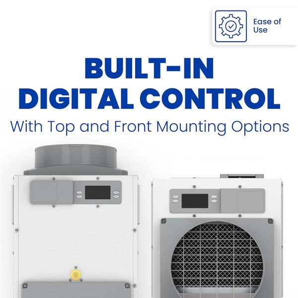For your convenience, the built-in digital control can be configured on the top or on the inlet side of the unit for easy access. Its interface makes setup and operation quick and easy. The dehumidifier has a simple-to-use interactive display making setup and operation a breeze.