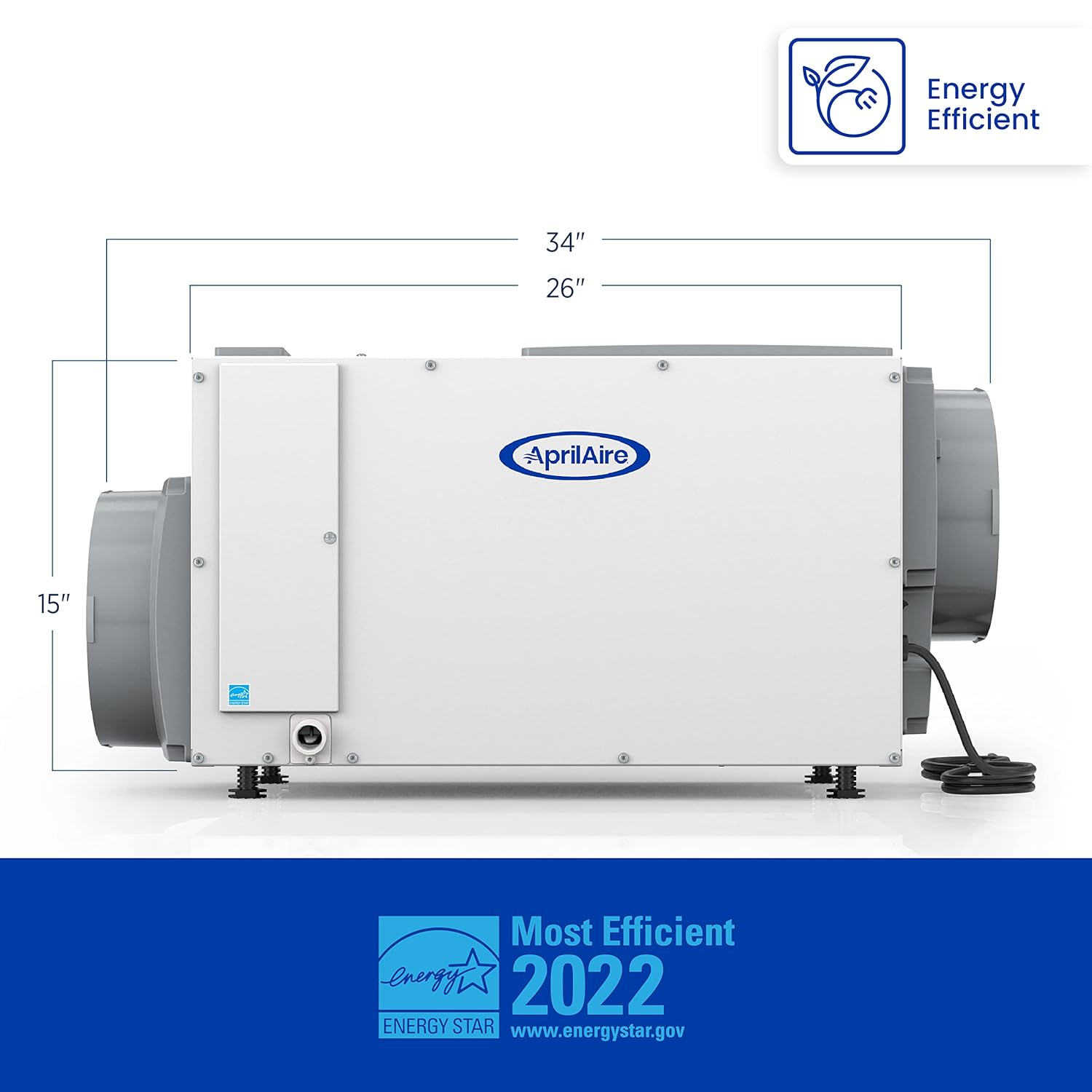 - Removes up to 80 pints (10 gallons) of moisture per day