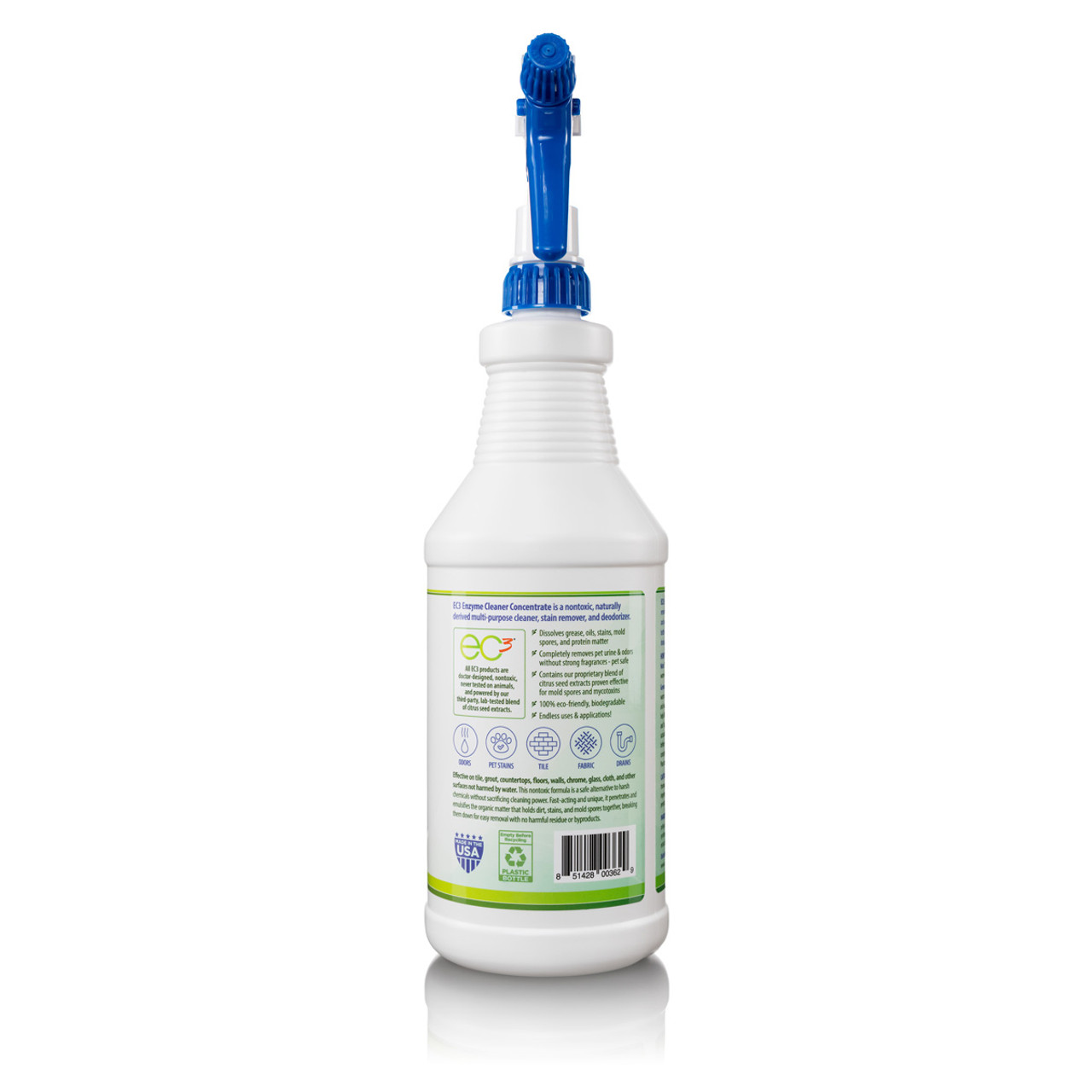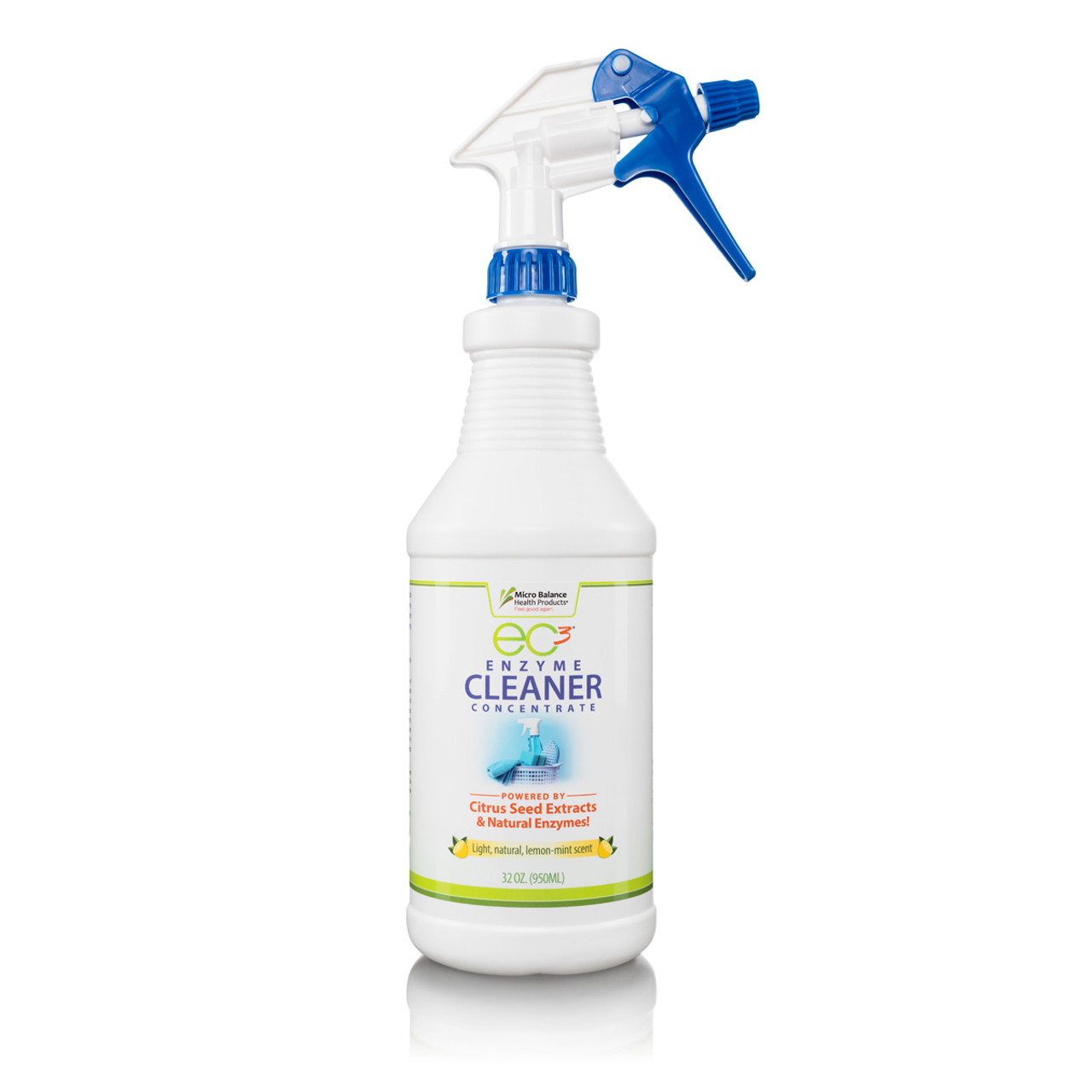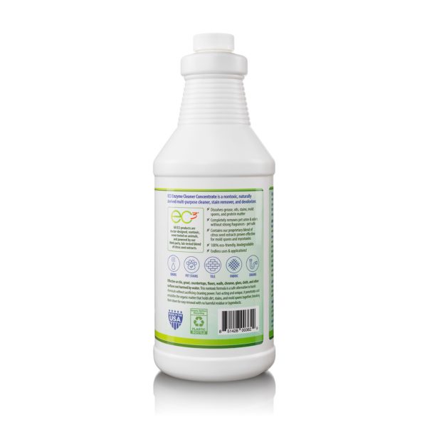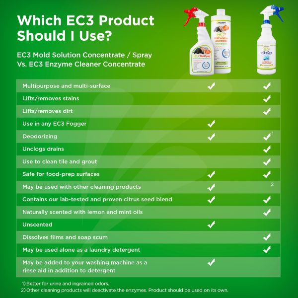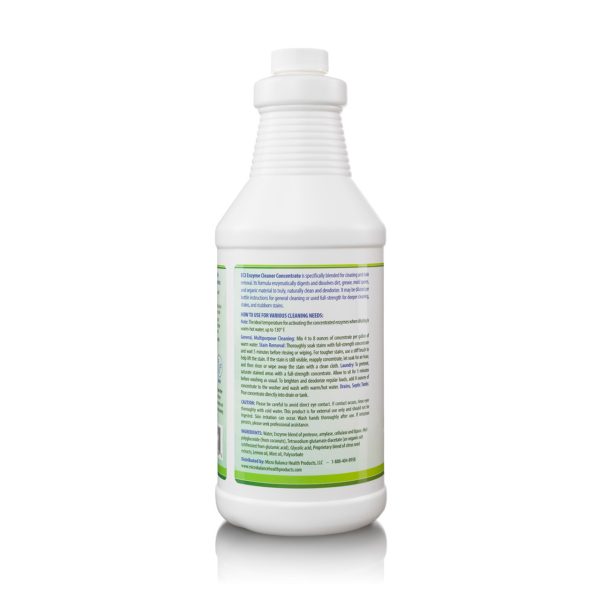 We designed EC3 Enzyme Cleaner Concentrate to fill the need for a nontoxic, all-purpose, cleaning and stain removal product that also addresses mold and mycotoxin levels in the home. While this product has a light lemon-mint scent, it does not contain perfumes, harmful chemicals, or dyes. The formula is a safe, effective alternative to harsh chemicals without sacrificing cleaning power. Fast-acting and unique, this cleaner penetrates the organic matter that holds dirt, stains, and mold spores together, breaking them down for easy removal with no harmful residue or byproducts.